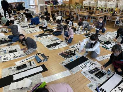 年内の書き初め練習も終盤になりました。これまでの練習の成果を活かして、本番と同じように作品を書きました。しんと静まり返った教室からは、子供たちの本気が伝わってきます。