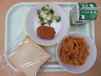 食パン 牛乳 スパゲッティナポリタン コロッケ カラフルサラダ