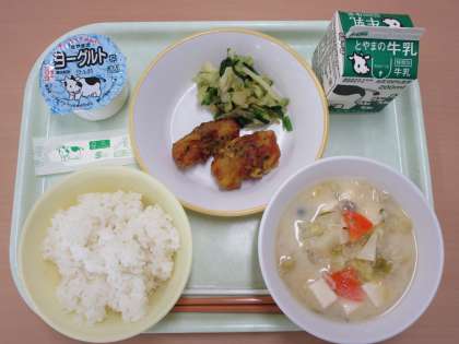 ごはん 牛乳 ちくわのカレーあげ しょうがひたし とうにゅうじる