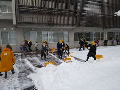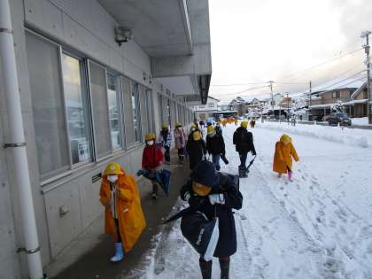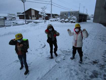 子供たちは元気に登校し、「雪に負けないぞ」とガッツポーズをしてくれる子もいました。