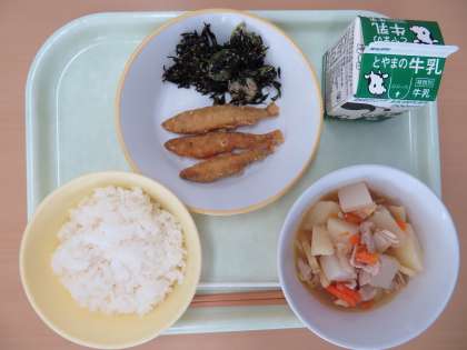 ごはん 牛乳 わかさぎのフリッター ひじきのごまあえ