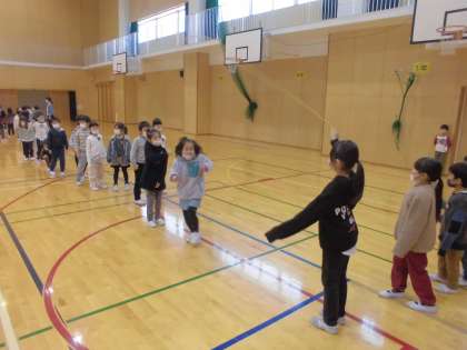 みんな縄を怖がらず、タイミングよく入れるようになってきました。休み時間に進んで練習する姿も見られます。