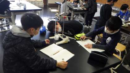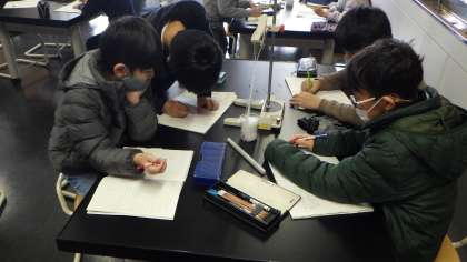 理科の学習では、水の状態変化について学習しています。器具を安全に扱って実験を進めることができました。