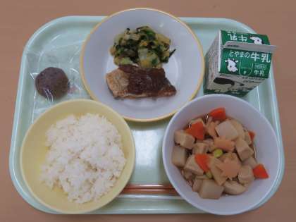 ごはん 牛乳 さかなのねぎみそかけ ゆずこんぶあえ ふきよせに