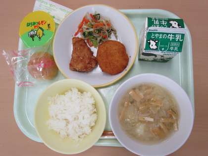 ごはん 牛乳 ◆ぶたにくのたつたあげ ◆えびカツ ごまあえ