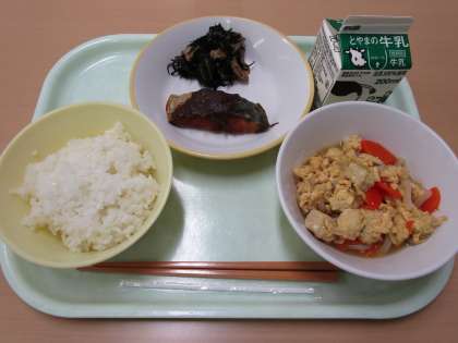 ごはん 牛乳 さかなのあまみそかけ ひじきとこまつなのいために