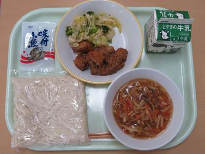 ソフトめん 牛乳 ごもくあん ごまだれポテト あじつけこざかな