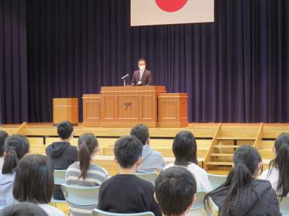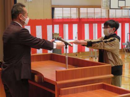 卒業式を前に、修了式を行いました。代表児童が校長先生から修了証をいただきました。