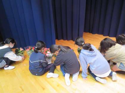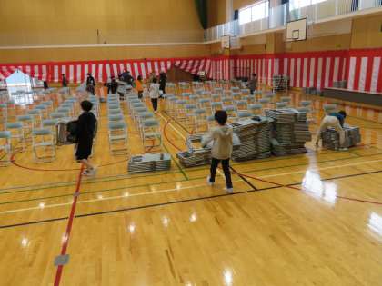 卒業式に向けて準備を行いました。会場の体育館や教室の環境をきれいに整えました。