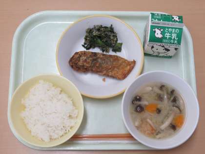 ごはん 牛乳 あじのたつたあげ よごし ごもくみそしる