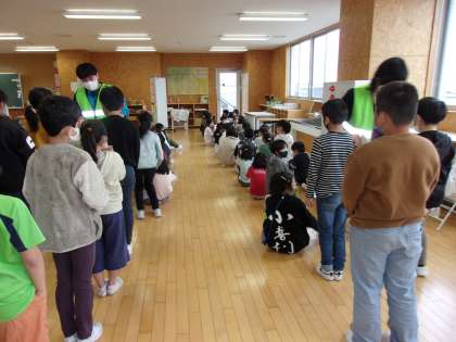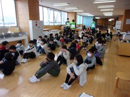 学年で避難訓練を行いました。真剣な態度で素早く行動することができました。