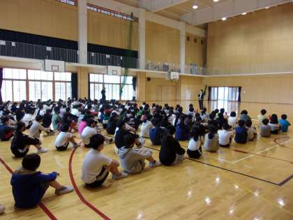明日の児童会発足式に向けて、5、6年生の委員会メンバーで練習をしました。児童会発足式では、この1年間児童会スローガンに向けてどのような活動をしていくのか、委員会ごとに全校に伝えていきます。自分たちの意気込みや熱意が伝わるように、返事の仕方や動きの確認を行いました。