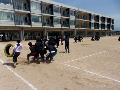 実際にタイヤを使った練習に、子供たちは楽しみながら取り組んでいました。