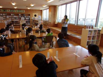 図書室で、本の借り方を教わりました。たくさんの本の中から、お気に入りの1冊を探して借りました。これからたくさん本を読みたいと、はりきっていました。