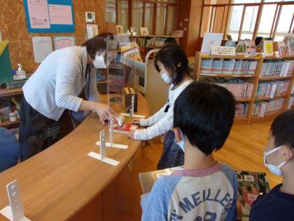図書室で、本の借り方を教わりました。たくさんの本の中から、お気に入りの1冊を探して借りました。これからたくさん本を読みたいと、はりきっていました。