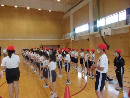 来週の運動会に向け、声の大きさを意識しながら練習しました。
