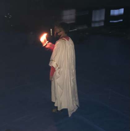 キャンドルサービスをしています。営火長の入場、そしてみんなのキャンドルに火が灯りました。