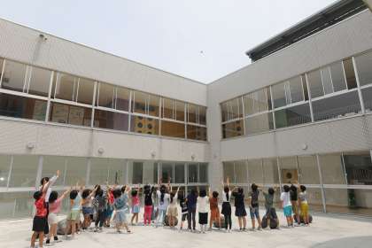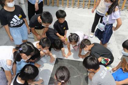 学校の大切な場所である「ふれあいの庭」の北斗七星を生かした並び方を考えました。