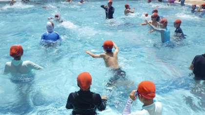 今年の水泳学習が始まりました。暑い中入るプールは、とても気持ちがよさそうでした。