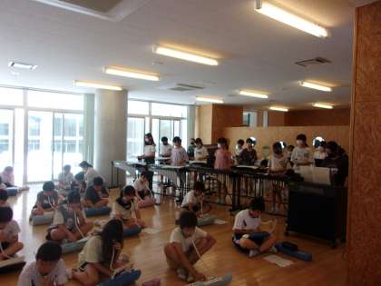 子供たちは全員で合わせることに緊張している様子でしたが、とても演奏することができ、安心した様子で学習を終えていました。達成感や楽しさから笑顔がたくさん見られました。