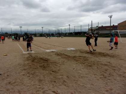 明日のチャレンジ陸上記録会に向けて、6年生は毎日練習を続けてきました。今日はソフトボール投げと走り幅跳びの記録を測りました。明日の本番は、自分の最高記録を目指して全力で取り組みます。
