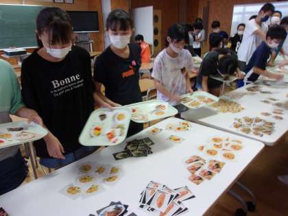 家庭科の学習で、一食分の献立をバイキング形式で自由に考えました。料理を選んだ理由を話し合う中で、「好きなものや食べたいものを選んだ」「おいしそうなものを選んだ」「栄養のバランスも考えて野菜を入れた」など、様々な視点が出てきました。