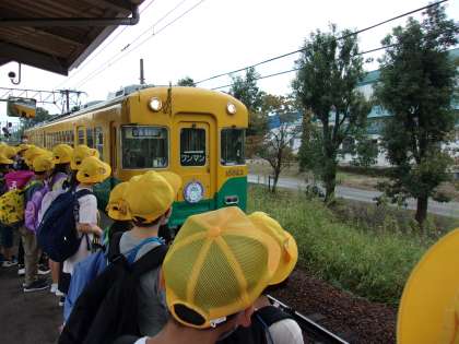 富山駅までは、荏原駅より地鉄電車に乗りました。ホームでは、電車がやってくるのを楽しみに待っていました。電車の中でも、運転手さんがしていることを見たり、マナーに気を付けて過ごしたり、たくさんの学びがありました。