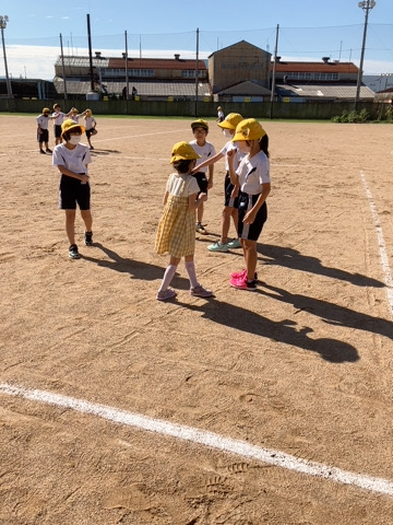 かげについて学習をしています。国語の学習ので出てきた「かげおくり」をしたり、かげふみ鬼をしたりしながら、かげへの興味を高めていました。