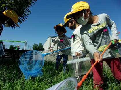 生活科の学習で、虫とりに行きました。公園では、友達と協力して探したり、捕まえたりする姿が見られました。学校に戻ってからも、虫かごをじっと見て「草を食べているよ」「触覚が長いね」など、見付けた虫たちに親しんでいる様子でした。