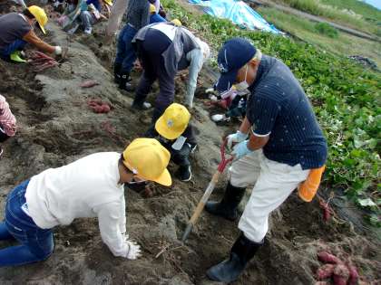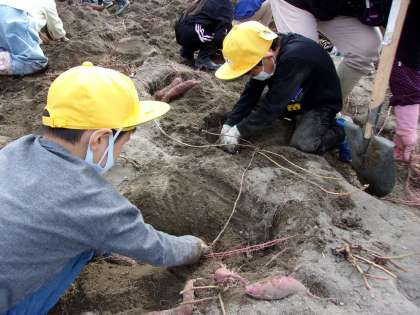 6月に植えたさつまいもを掘りに行ってきました。子供たちは、想像以上の多さに驚いていたようです。これまで、水やりをしてくださったり、今日も子供たちが掘りやすいように、葉を切ってくださったり、たくさんのお世話をしてくださった地域の方に、感謝の気持ちを抱いた子供たちでした。