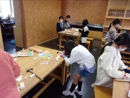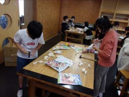 図画工作科では、木材を使った立体作品作りに取り組んでいます。