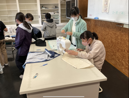今日、初めてミシンを使って、裁縫をしました。友達と協力して、エプロン作りをがんばっていました。