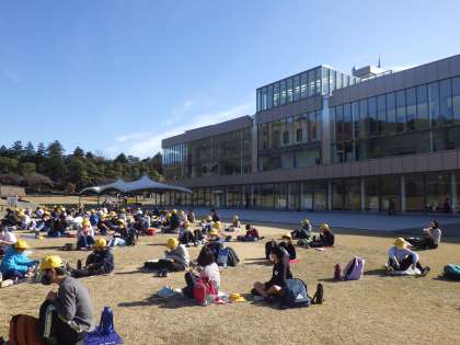 お昼はしいのき緑地で金沢城の城壁を見ながら食べました。紅葉がきれいでした。