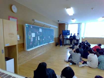 今日は、以前から計画していたクリスマス集会がありました。集会では、クイズや折り紙、お笑いなど楽しい活動がたくさんありました。