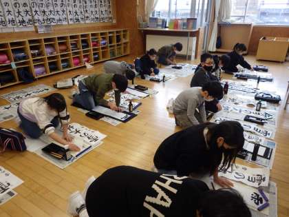 5−3 3学期始業式後の学活、書き初め大会の様子