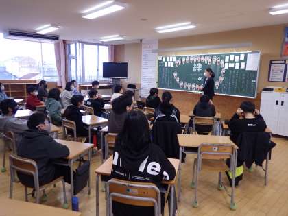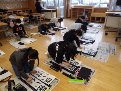6−2 3学期始業式後の学活、書き初め大会の様子