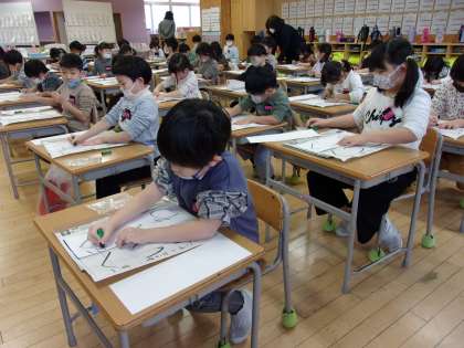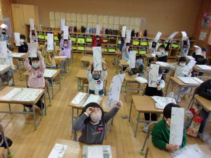 今日は始業式の後、初めての書き初め大会でした。2学期や冬休み中の練習の成果を出し切ろうと、どの子も真剣な表情で取り組んでいました。