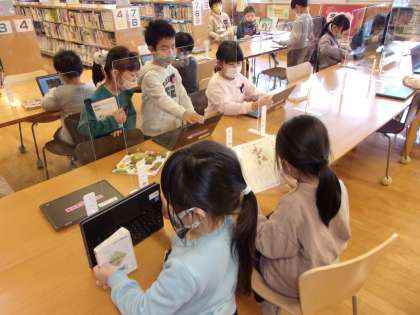 1年生では、クロムブックの様々な使い方を学んでいます。今回はお気に入りの本を写真に撮って先生に送ったり、写真に絵やコメントを書き込んだりする練習をしました。クロムブックの扱いにもだんだん慣れてきた様子です。