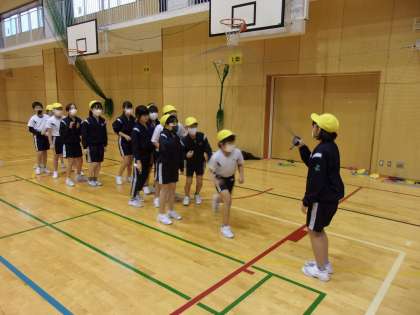 校内なわとび大会に向けて、練習しています。(青団、黄団)
