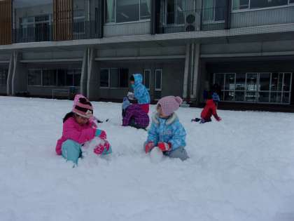 生活科の学習で雪遊びをしました。降りたてのふわふわの雪を目の前に、子供たちは大喜びで遊んでいました。