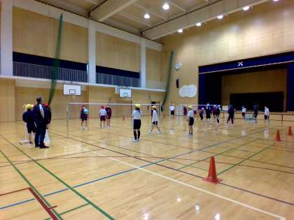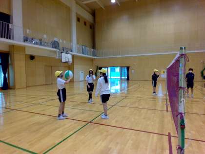 団の仲間と作戦を考え、ボールをつなぎ、協力して戦っています。ボールのキャッチや、アタックなどの基本動作が上達しています。