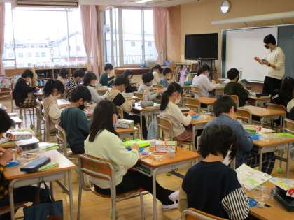 理科「じしゃくにつけよう」、算数科「三角形を調べよう」の学習をしています。