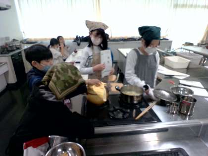 1組の調理実習を行いました。味噌汁とご飯を上手につくれるよう、頑張りました。