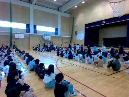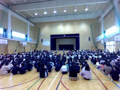 全校児童が集まり、児童会引き継ぎ式が行われました。6年生から5年生へとバトンが引き継がれました。