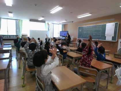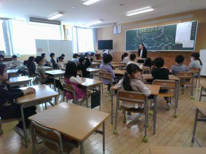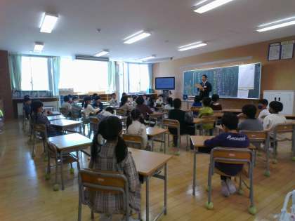各クラスで担任の先生の話を真剣に聞く姿やクイズで楽しそうにしている子供たちの姿が見られました。