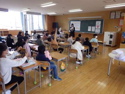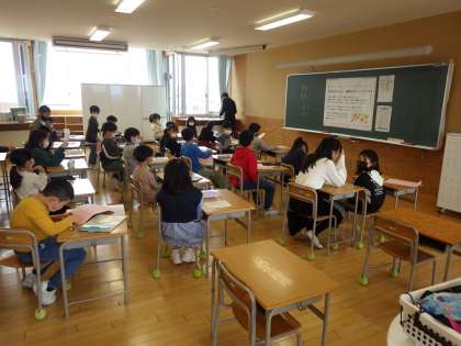 各クラスでは、担任の先生の話を聞く子供や新しく仲間になった友達と楽しく話をする子供たちの姿がありました。