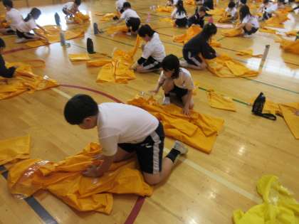 楽しみながら、カッパの早着替えのコツを習得しました。
