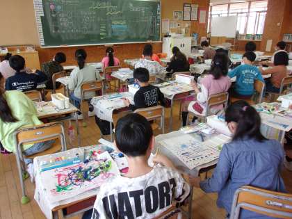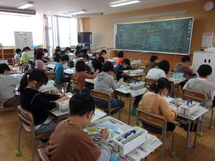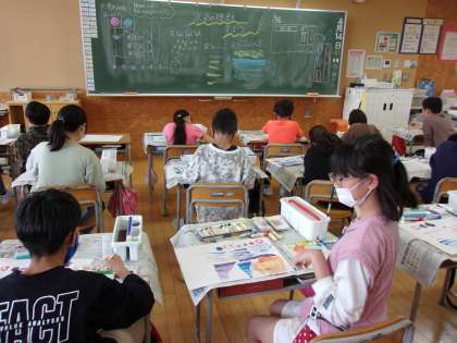 水彩を用いて、自分の表現したいものを描くことができるように、改めて色の作り方や、穂先の使い方を確認しました。
