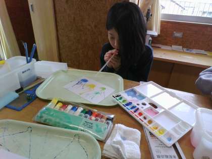 ビー玉やあみとブラシ、ストローを使って偶然できる模様を楽しみました。唯一無二の素敵な作品がたくさんできました。