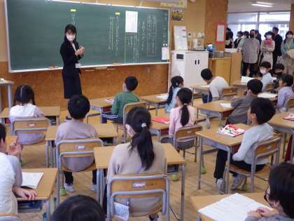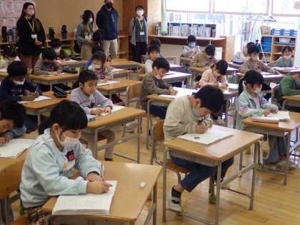 国語科「やくに分かれて音読しよう」の学習をしています。